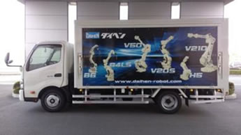 お客様の現場でシンクロフィードの実演ができるコンパクトなバンをデモカーに採用しました。 - 小形ロボット「FD-H5」を採用