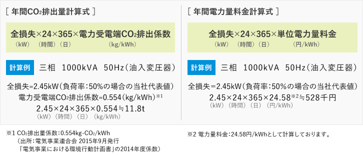 当社製油入変圧器6kV/210V 三相 50Hz 1000kVA 負荷率50%の場合の比較